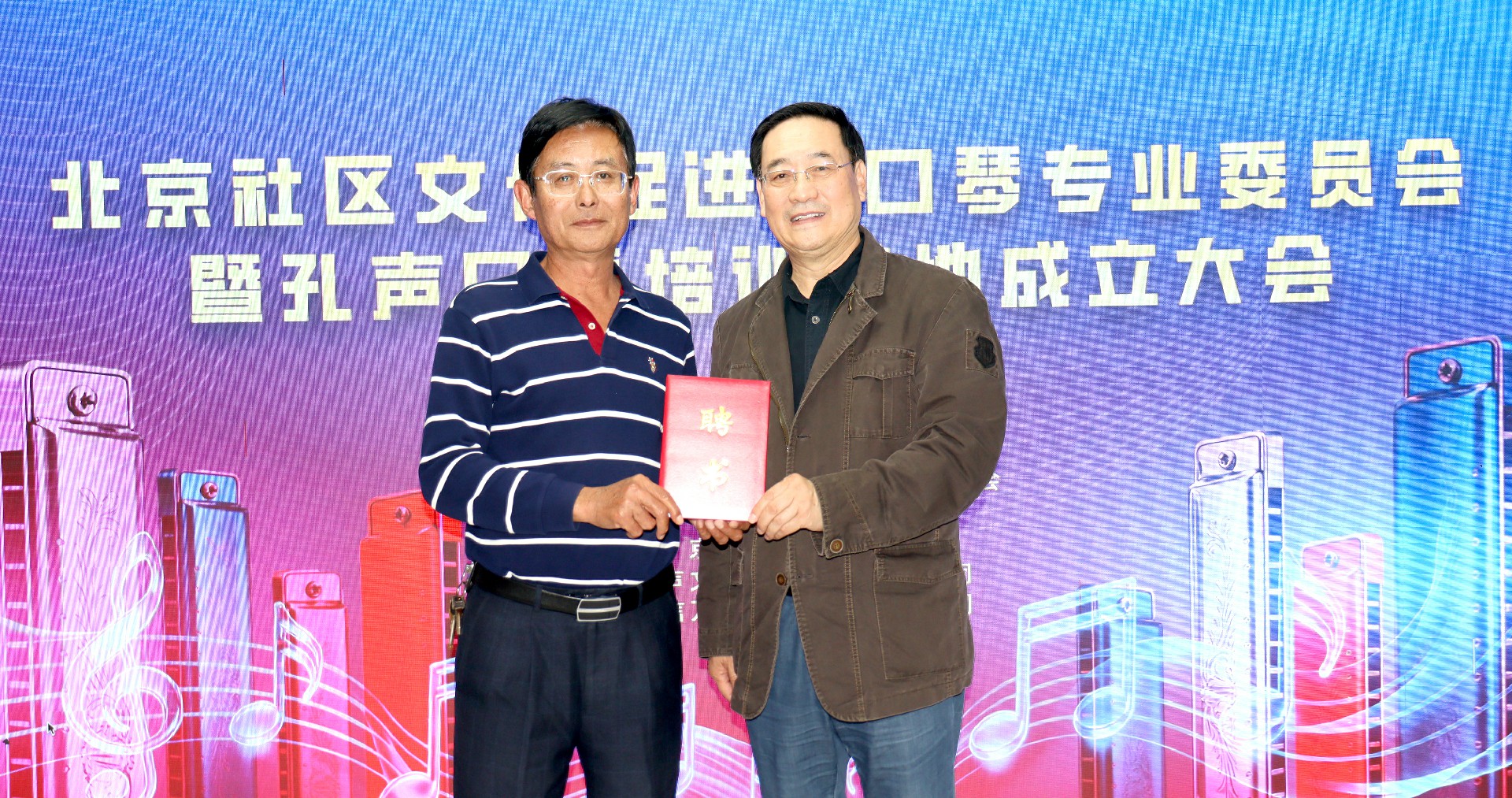 现场主持人公布了口琴专业委员会成员班子,北京社区文化促进会李建华会长为新当选的口琴专业委员会领导颁发聘书。任命北京社区文化促进会口琴专业委员会主任:胡瑞民、副主任:魏连华、艺术总监:刘春林、秘书长:宁振东、艺术顾问:王志祥、孔真清、李斌、范开建、丁小鹏、刘国强。江苏孔声文化艺术传播有限公司董事长孔真清先生还为北京社区文化促进会口琴专业委员会主任胡瑞民老师颁发孔声口琴培训基地聘书证书。孔声乐器形象宣传大使、孔声公益口琴学校校长李斌老师作为代表向北京社区文化促进会口琴专业委员会主任胡瑞民老师及北京社区文化促进会口琴专业委员会赠送口琴。支持单位京视网手机台台长刘国强、瑞众保险北京分公司区域总经理侯鹏分别作了精彩发言。
