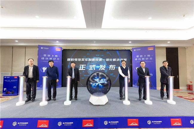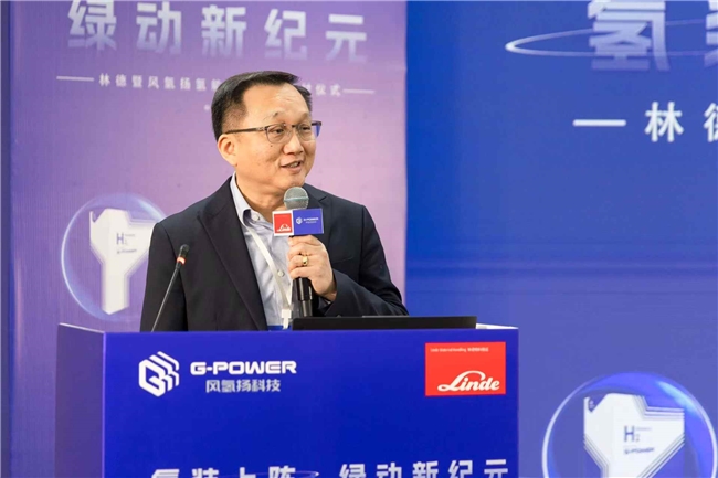 紧接着,郭总与合作伙伴风氢扬科技一同发布制氢用氢一体化解决方案。此次,林德与风氢扬强强联合,共同定制开发了叉车专用的氢燃料电池系统,经过多年研磨、迭代升级,产品整体性能走在前列。目前,林德叉车与风氢扬已联合开发3-5吨的氢能叉车产品,可适配不同场景应用需求。