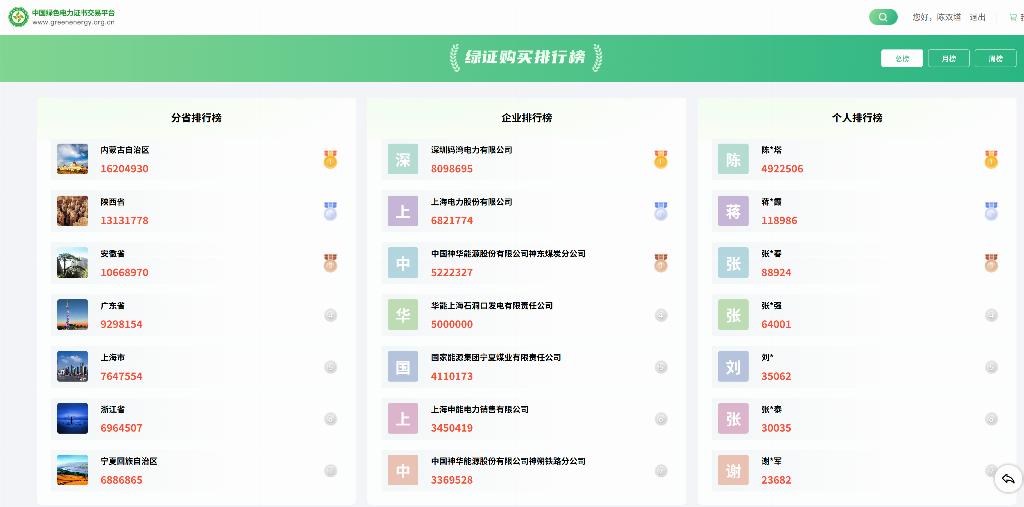 中国绿色电力证书交易平台绿色电力证书交易从企业来看,2023年的TOP100企业名录涵盖多行业,像能源、电信等。这显示企业对绿色电力的重视在提升。对于个人排行,虽没太多提及,但也能想象,随着环保意识增强,个人参与绿电消费也会增多。这不仅是消费行为,更是对绿色发展的支持,希望更多企业和个人参与进来,推动能源转型。