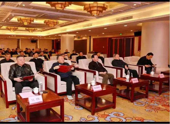 杨多良主席(中),宋国权主任(左二),秦德文主席(右二),童怀伟主席(右一),吴伟同志(左一)在前第一排就坐,出席2025年3月9日举行的公益活动