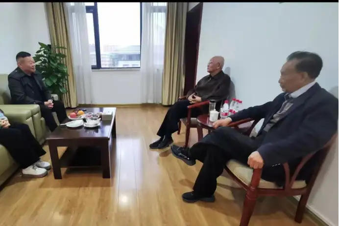 安徽省人大原副主任、省关工委主任张俊(中)、黄山市关工委主任叶枝光(右一)与吴伟同志(左一)亲切会谈