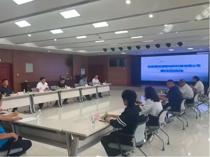 中共中央办公厅挂任安康市委常委、副市长、一级巡视员孙宝峰(左二)带领有关部门负责人和基金会吴伟主任(右中),安徽茵际源公司董事长张荣容(右四)等进行项目投资会谈
